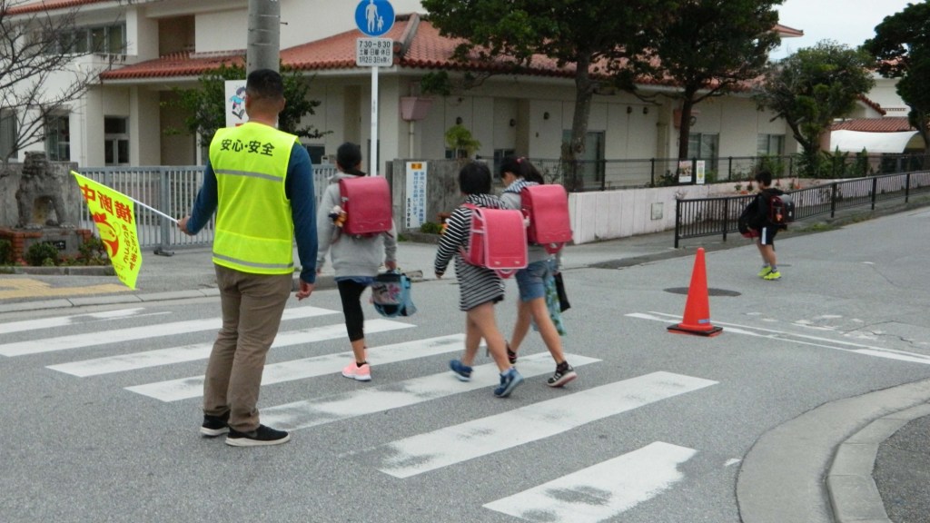 Trên đường phố, có hệ thống biển báo an toàn cho trẻ. Nhiều khu dân cư có “người gác phố” – thường là các bác lớn tuổi tình nguyện đứng ở ngã tư mỗi sáng để quan sát học sinh đi học. Các trường thường tổ chức học sinh đi thành nhóm nhỏ (gọi là tsuugaku group) để cùng nhau đến lớp.